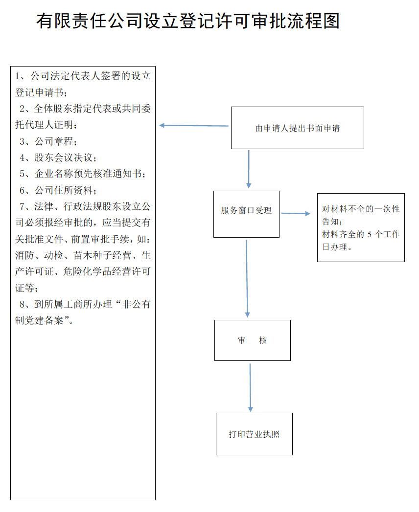 有限责任公司设立登记许可审批流程图