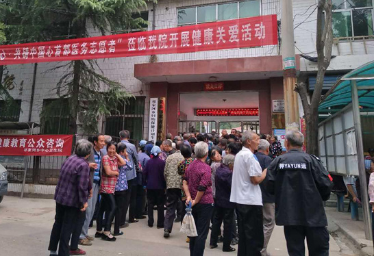 14日上午,在驱车赶了两个多小时山路之后,由北京医院协会农村医院委员会主任委员孙凤永、北京市大兴区黄村医院院长张弘等30余名专家志愿者组成的祁家河医疗分队来到夏县祁家河乡中心卫生院,为当地群众免费送医送药,医疗队还深入村户开展特困户慰问等活动。村民们听说有首都的医生来义诊,早早地来到门口等候。