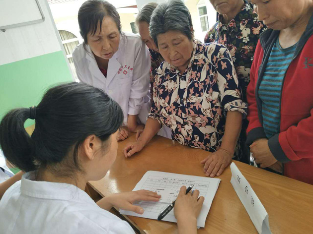 义诊一开始,村民们就自发在挂号处排队