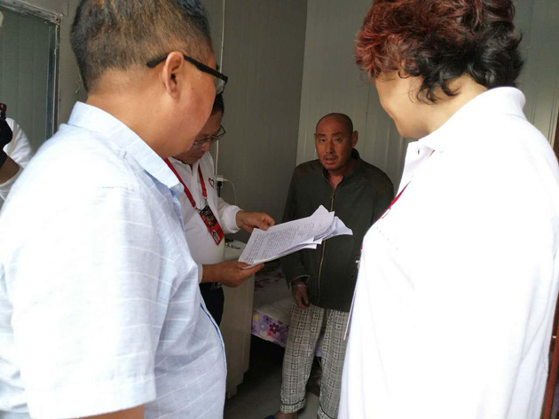 今年13岁的范晓旭于2007年患上了早幼粒细胞白血病,但是她坚持学业,在结束阶段性治疗后就会及时返回学校上学。家里为了给孩子治疗几乎花掉所有积蓄,过着清贫的生活。北京医院协会农村医院委员会主任委员孙凤永、北京市大兴区黄村医院院长张弘等专家志愿者和祁家河乡党委书记邢健、祁家河乡中心卫生院院长梁全志一行来到位于上坪村的范晓旭家中,见到了她的母亲范锁梅,并详细询问范晓旭的病情,为她送来学习用品等。专家志愿者一行还陆续到患脊柱骨折伴多发性骨质疏松症的王京娥、患银屑病的柴海军等病人及89岁的老党员刘荣家中进行慰问,为他们送去药品和食用油等生活物资。