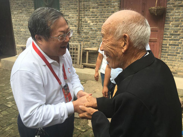 北京医院协会农村医院委员会主任委员孙凤永亲切地与老人交谈