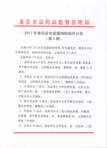 2017年食品安全监督抽检信息公告(第5期)